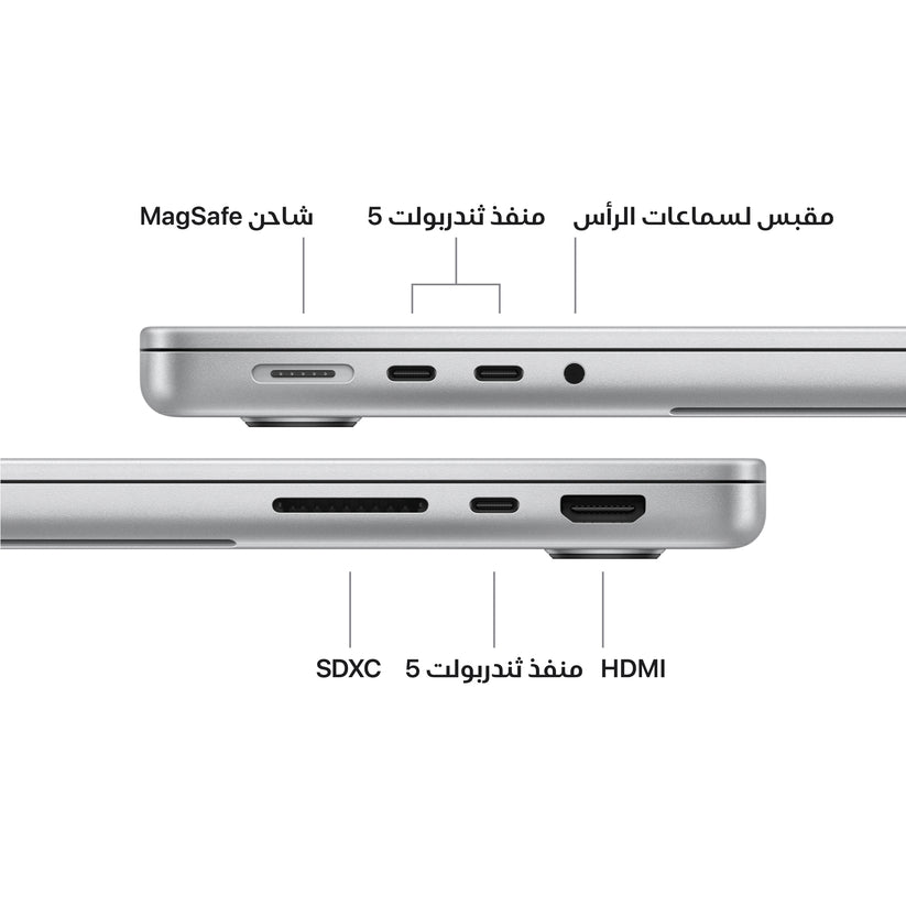 شاشة احترافية لامعة — تتميز شاشة ريتنا ليكويد XDR مقاس 14.2 إنش بدرجة سطوع قصوى تبلغ 1600 شمعة/المتر المربع،5 وسطوع مستمر يصل إلى 1000 شمعة/المتر المربع، ونسبة تباين بمقدار 1,000,000:1.