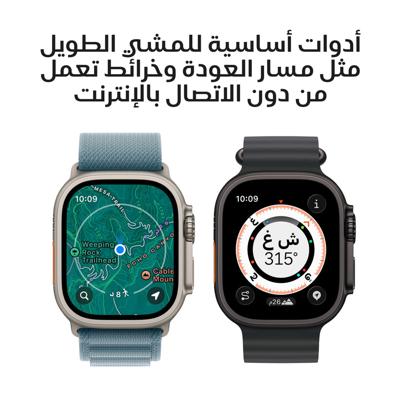 ميزات السلامة — تستطيع Ultra 3 اكتشاف تعرضك لسقوط قوي أو لحادث سيارة خطير، ويمكنها تلقائياً المساعدة في الاتصال بخدمات الطوارئ وإبلاغ الأشخاص الذين حددتهم كجهات اتصال للطوارئ. تستطيع ميزة الاطمئنان إرسال إشعار تلقائي إلى أحد أحبائك ينبهه بوصولك إلى وجهتك.