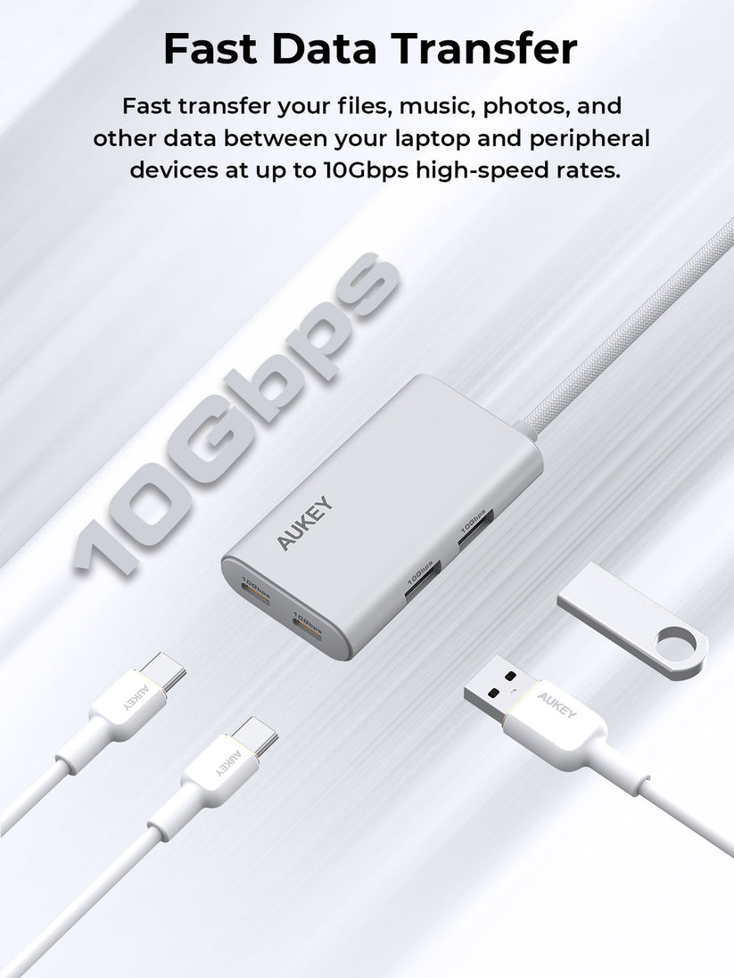 Equipped with 2 USB-C and 2 USB-A ports, it's so powerful as to offer fast data transfer rates of up to 10Gbps for multiple devices simultaneously, which ensures your photos, videos, and files are transferred at incredible speeds. This is perfect for users who need to transfer large amount of data quickly and efficiently.