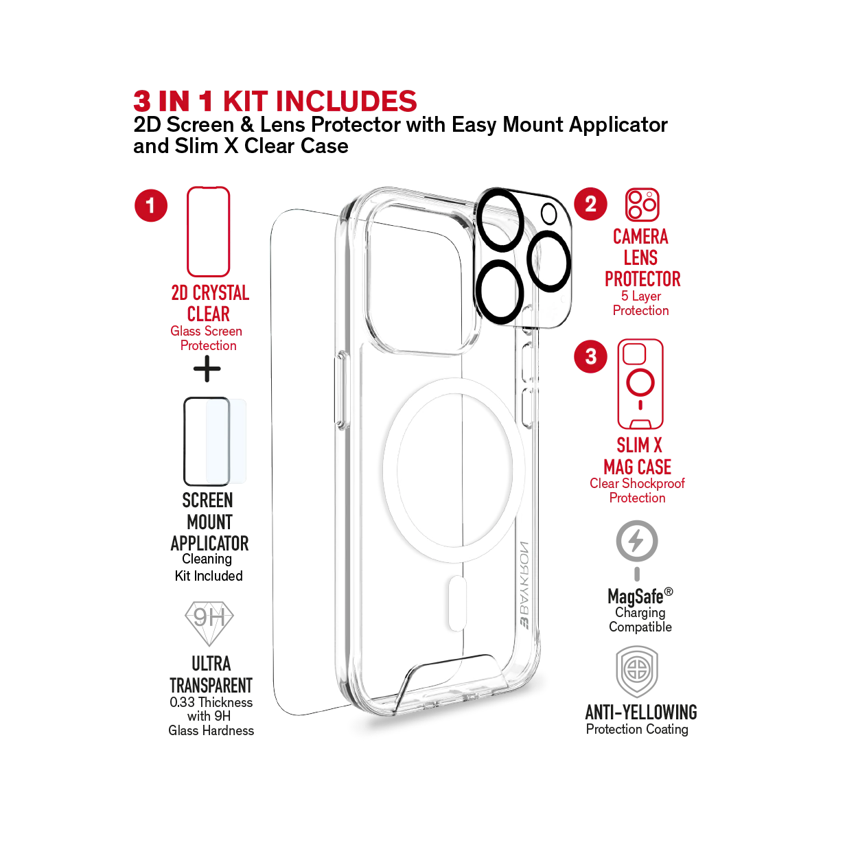 The Baykron 3 in 1 Package Case+Screen+Camera lens Magsafe is the ultimate protection and enhancement solution for your iPhone 15 Pro Max. This package includes a durable case to shield your device from everyday wear and tear, a high-quality screen protector to keep your display crystal clear and scratch-free, and a premium camera lens for capturing stunning photos and videos. With its convenient Magsafe compatibility, this package ensures seamless functionality and a stylish look for your iPhone 15 Pro Max.