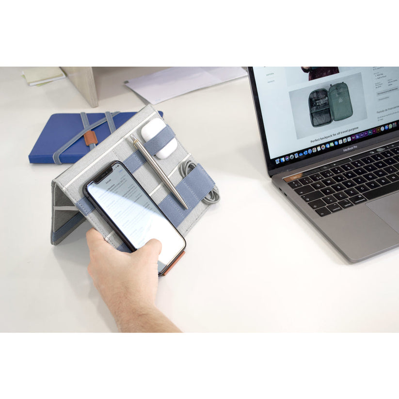 3-IN-1 ORGANIZER: FOLD works as a PORTABLE ORGANIZER: ATTACHED to your LAPTOP or NOTEBOOK, to organize and carry your most important items. Becomes a DESKTOP ORGANIZER with just a simple gesture: Tech / Electronic organizer & phone holder. BACKPACK ORGANIZER: Keep all you need handy and ready to go to your next meeting, even inside the backpack or handbag, without take much space. A great companion as travel electronics organizer and travel cord organizer.