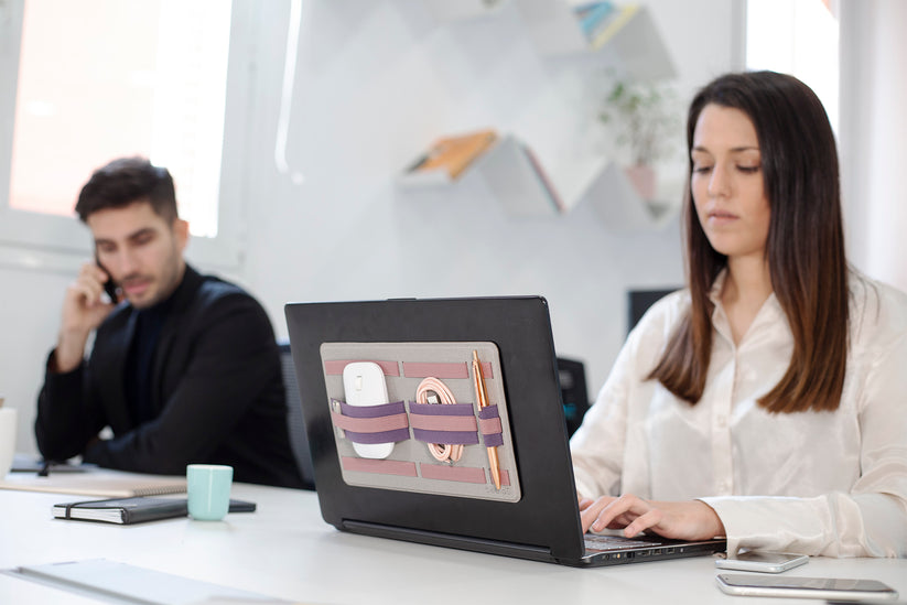 EVERYDAY PORTABLE ORGANIZER – STICKS ON any laptop 12” or larger and it's thinner than a pen. Carry your essentials with you, organized and handy. Keep your hands and pockets free. SHIFT PRO is the easiest and most practical way to carry your essentials with you when changing places, anywhere. Keep your stuff in place and NEVER LOSE ANYTHING: phone, hard drives, wireless mouse, USB cables, earphones, pens, pencils, business cards.