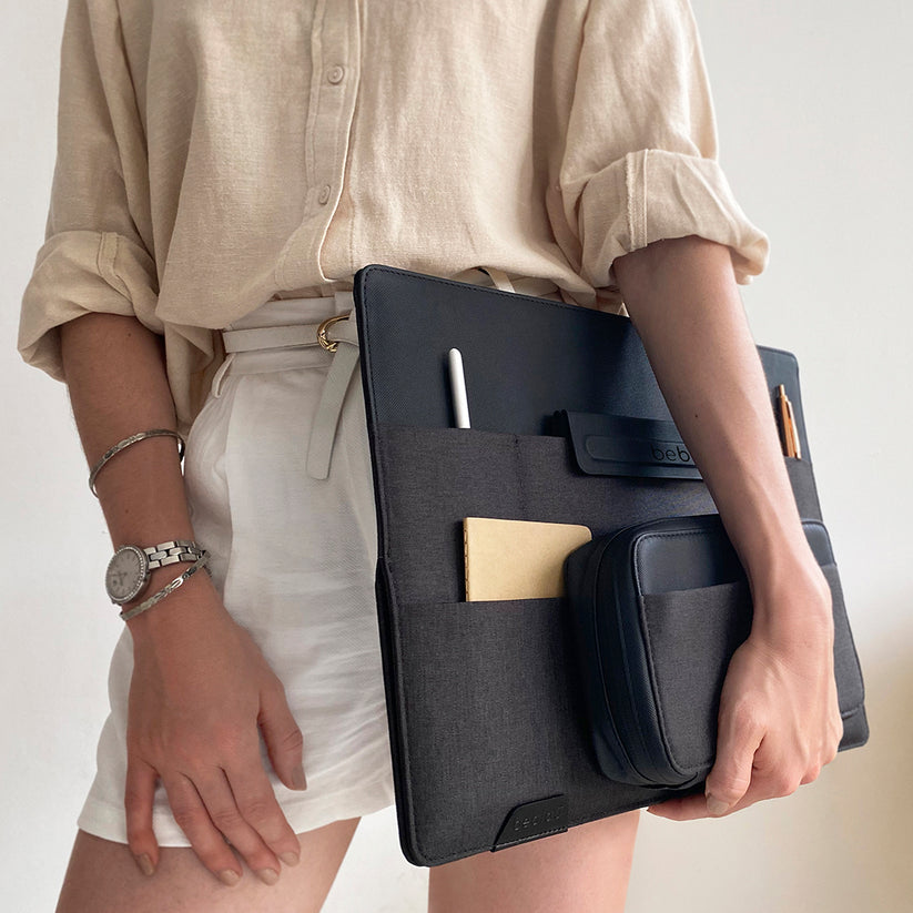 SLIM and ELEGANT & TRAVEL FRIENDLY: Who said you couldn't be stylish and keep your stuff protected and handy? This Beblau SLEEVE stands out thanks to its SLEEK and FUNCTIONAL DESIGN – where details make the difference… Shock-Absorbing protective layer to keep your laptop or tablet protected & soft touch and fabric and magnetic closure & 5 slim front padded pockets giving your quick access to your essentials, to carry your workspace with you. A great companion as a travel electronics organizer.