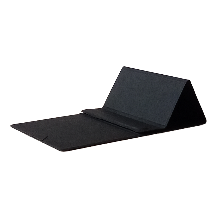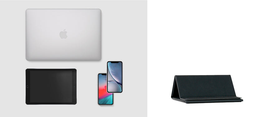 STRONG & DURABLE + Made with RECYCLED AND VEGAN MATERIALS: Our universal laptop stand is built with materials ensuring it is built to last, customized PU, and a light rigid core making it extra strong and durable. The leather support label is made from 100% recycled PVB. It is a rock-solid stand when it's folded up, but its small dimensions make it unnoticeable while not in use and unfelt when carried.