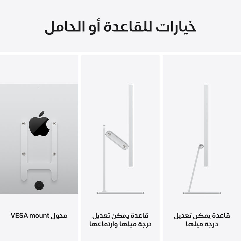 لكل وجهة نظر قاعدة — تأتي شاشة Studio Display مع قاعدة يمكن تعديل درجة ميلها. وتتوفر أيضاً قاعدة يمكن تعديل درجة ميلها وارتفاعها أو محول VESA Mount لتعرض أعمالك الرائعة بطريقة مثالية.