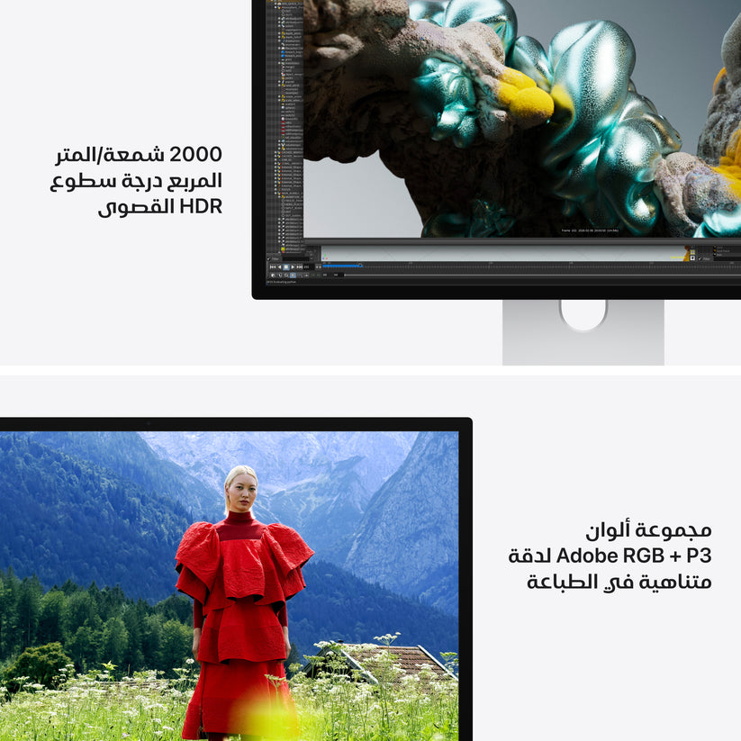 مجموعة ألوان أوسع — بفضل إمكانية الوصول إلى كل من مساحتَي ألوان P3 وAdobe RGB، تقدم شاشة Studio Display XDR دقة متناهية في العرض والطباعة. كما يتوفر نطاق واسع من الأنماط المرجعية المثالية لصنّاع الأفلام والمصورين ومصممي الغرافيك.