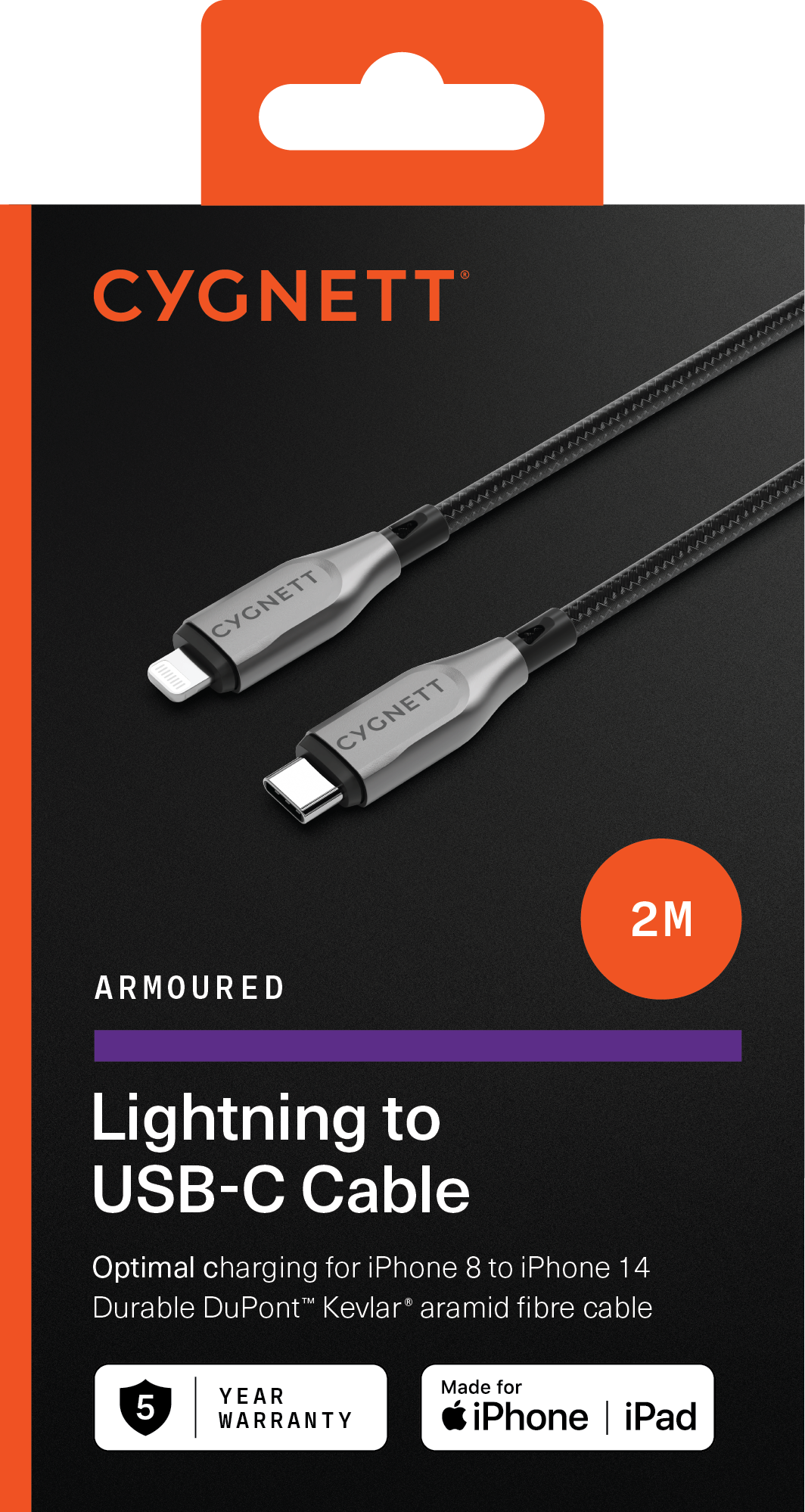 Fast charge your iPhone (30W), elongated cable connectors forged from a metallic alloy provide a refined aesthetic, strength, durability and superior scratch resistance made with double braided nylon with 5-year warranty.