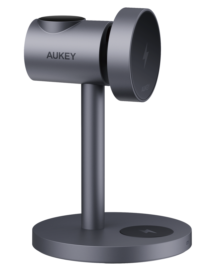 Aukey 3-In-1 Wireless Fast Charger Compatible Wth Iphone & Android - Grey