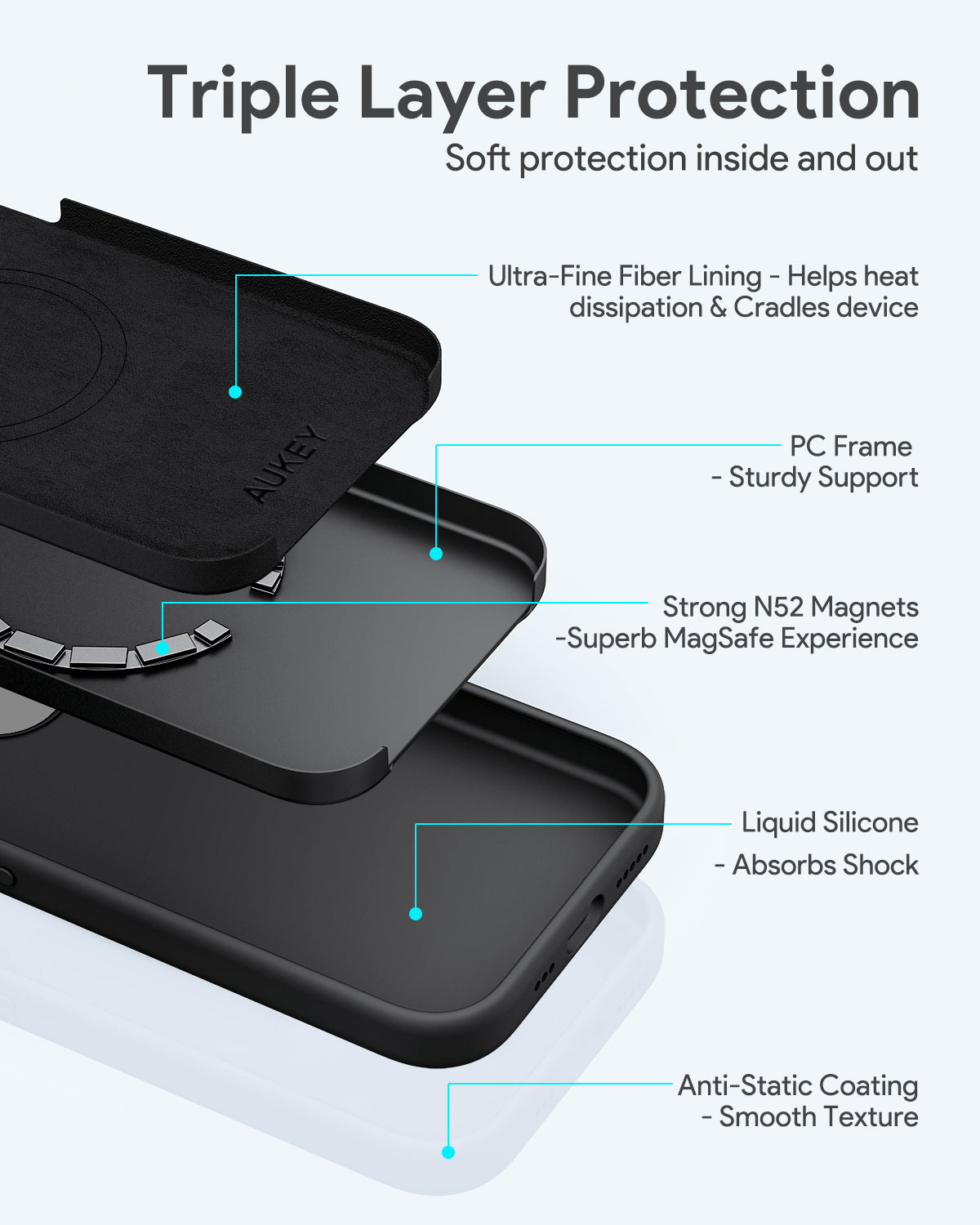 AUKEY Magnetic Hrd-Shell Phone Case Midnight iPhone 15 Black