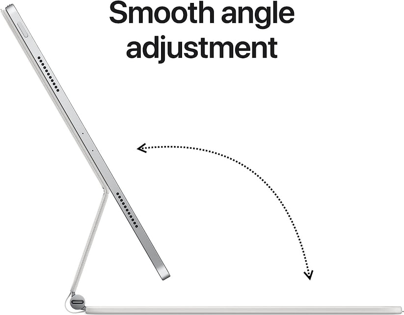 DESIGNED FOR COMFORT — Magic Keyboard has a floating cantilever design. It smoothly adjusts to the perfect viewing angle. Backlit keys and a scissor mechanism deliver quiet, responsive typing. The built-in trackpad is designed for Multi‑Touch gestures and using a cursor.